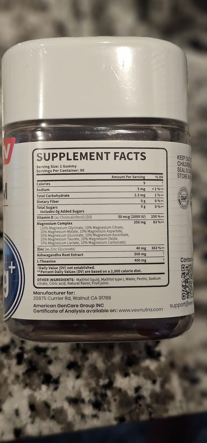 14-in-1 Magnesium Gummies with Ashwagandha, L-Theanine, Vitamin D3 & Zinc – Stress Relief, Sleep Support & Muscle Recovery – Edible Dietary Supplement